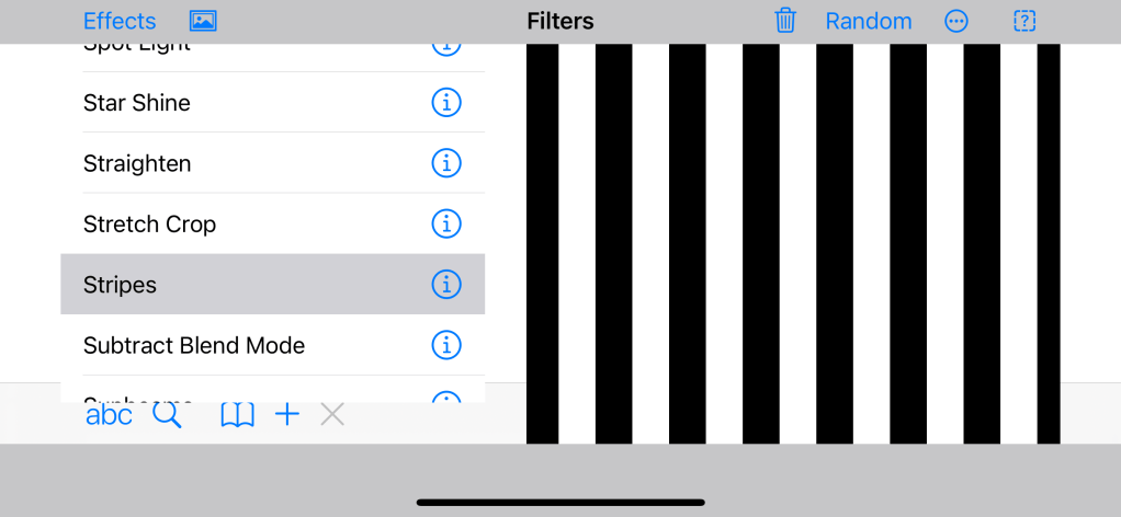 Filters that generate a pattern can be used as the input for a matte or other composite filter input.